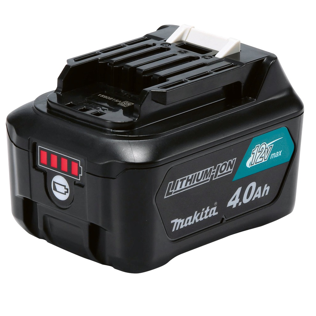 Kompakter Akku mit 4,0 Ah Kapazität und Ladezustandsanzeige. Geeignet für batteriebetriebene Makita 12Vmax CXT Werkzeuge. Der Akku ist leicht und sehr kompakt in der Größe. Ladezeit ca. 60 Minuten mit einem Schnellladegerät.