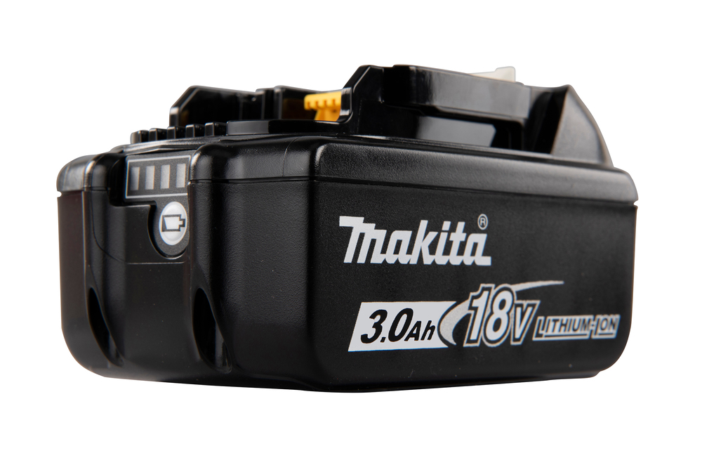 3,0 Ah Lithium-Ionen-Akku mit Ladezustandsanzeige. Leistungsstarker Allzweckakku für 18 V Makita LXT Werkzeuge Ladezeit ca. 24 Minuten mit Schnellladegerät.