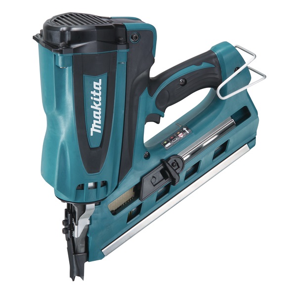 Die Nagelmaschine Makita GN900SE eignet sich besonders für Holzrahmen, Dachbaustoffe, Balken und viele andere Anwendungen, ohne Befestigungselemente oder Schläuche. Dieses Modell ist auch mit LEDs ausgestattet, um den Arbeitsbereich zu beleuchten, es ist kompatibel mit Nägeln von 50 bis 90 mm mit einem extrem schnellen und einfachen Be/Entladesystem. 7,2 V Gas Pneumatische Nagelmaschine mit ergonomischem Griff. Schnell und einfach zu bedienen, da kein Schlauch oder Kompressor benötigt wird. Nagelfähigkeit von 90 mm bis 1200 Nägel mit einer Nachfüllung. Möglichkeit der Tiefeneinstellung in 5 Positionen. LED-Beleuchtung für Batterieladezustand und Erkennung von Problemen. Im Lieferumfang enthalten: zwei 1,0 Ah BL0710 Batterien, Ladegerät DC07SA, Serviceschlüssel, Koffer.(Gaskartusche nicht im Lieferumfang enthalten).