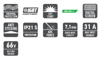 Schweißstrom 25% – 160 BIS 60% – 125 BIS 100% – 100 A