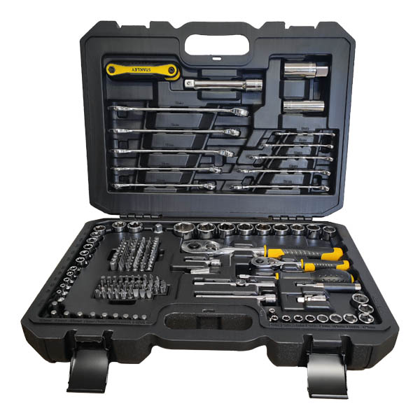 Stanley Kompass-Schlüsselsortimente 1/4″ und 1/2″ mit Ratsche, Kombinationsschlüssel und Biteinsatz-Serie im Koffer.