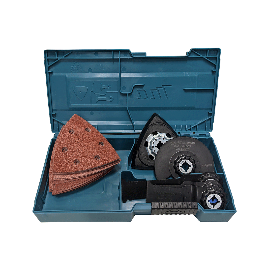 Multifunktionswerkzeug DTM52RTJX1 LXT® 18V für eine Vielzahl von Schneid- und Polieranwendungen in Bau- und Renovierungsprojekten, kompatibel mit STARLOCK MAX Klingen. Ausgestattet mit einer werkzeuglosen Zubehörklemme und der Schwenkgeschwindigkeit kann zwischen 10.000 und 20.000 g/min eingestellt werden. Geliefert mit zwei 5,0 Ah-Akkus und Ladegerät. Multifunktionsgerät der zweiten Generation, das mehrere Bearbeitungen durchführen kann und für die Verwendung des installierten Zubehörs unterschiedlich ist. Es ist kompatibel mit den Klingen Starlock, Starlock Plus und Starlock Max. Der Werkzeugwechsel kann ohne Werkzeug in 12 verschiedenen Positionen durchgeführt werden, Das Werkzeug erreicht Drehzahlen von 10.000 bis 20.000 OPM (Schwingungen pro Minute). Das AVT-Antivibrationssystem ermöglicht dem Bediener auch bei längerem Einsatz einen extremen Komfort. DTM52 LED-Licht für die Beleuchtung des Arbeitsbereichs, ermöglicht es Ihnen, Vollschnitte durchzuführen, Taschen zu schneiden, Metall zu schneiden und Schleif- und Polieroperationen.